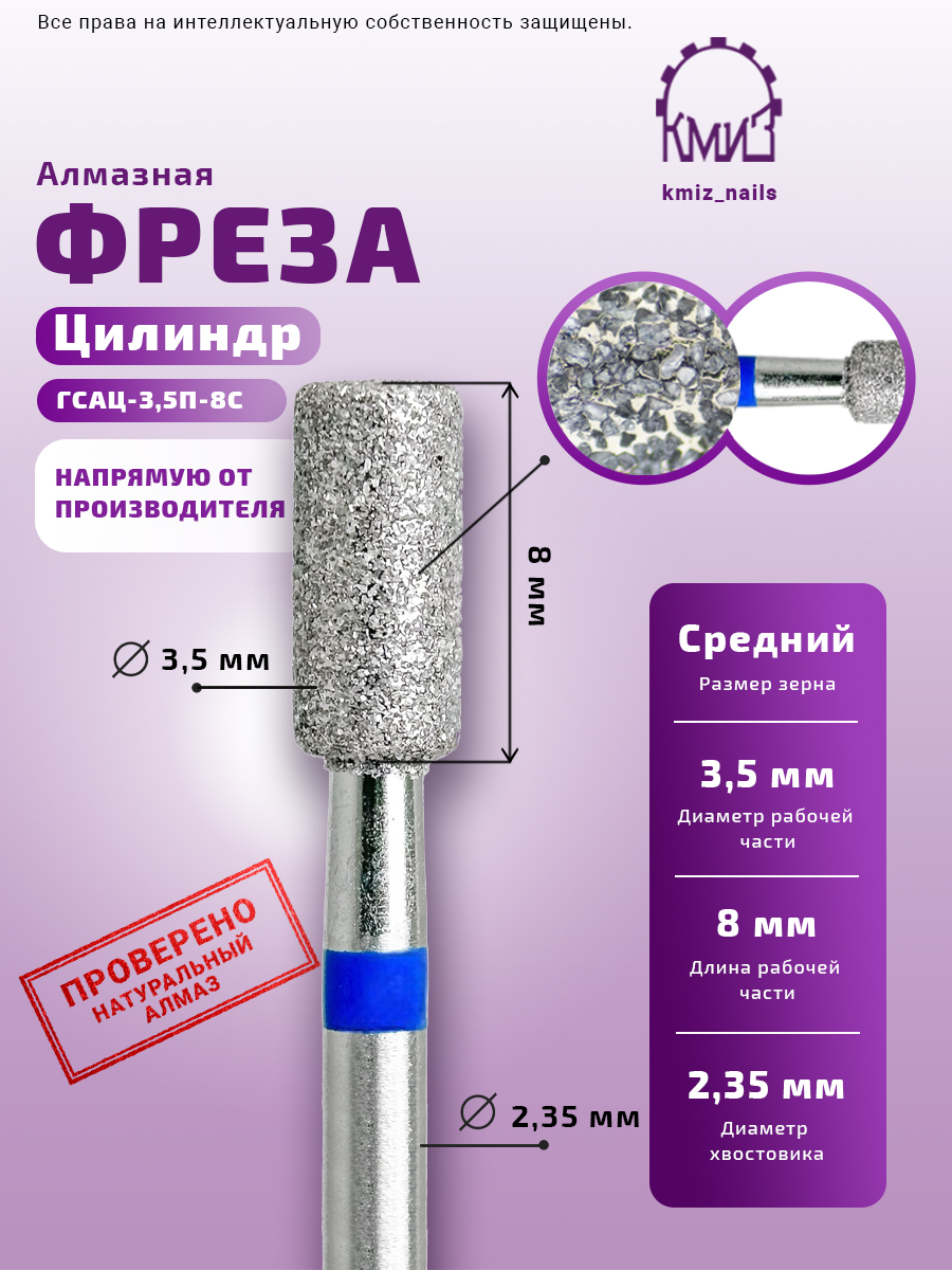 ГОЛОВКА АЛМАЗНАЯ ГСАЦ-3,5П-8 С ЦИЛИНДР