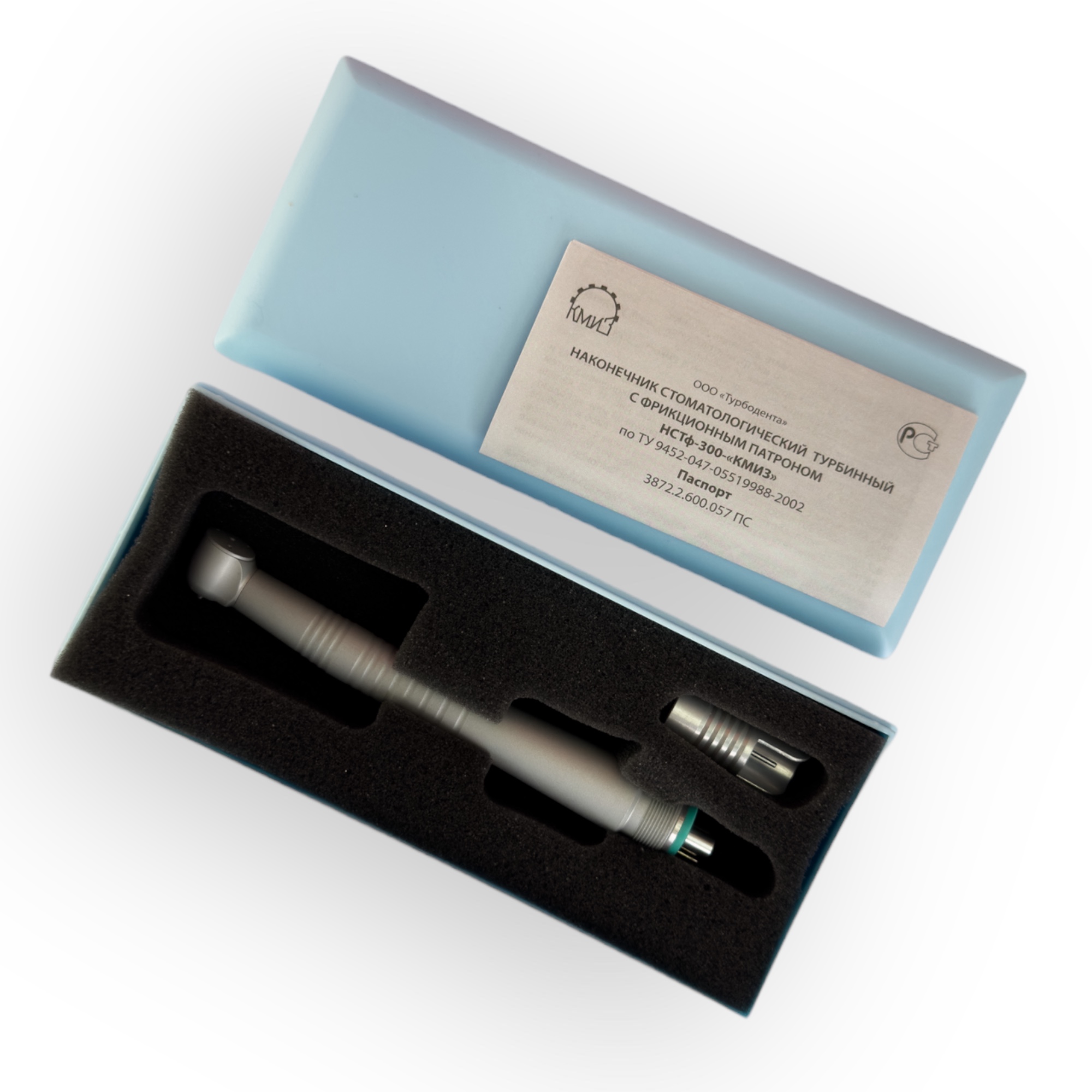 Турбинный наконечник с фрикционным зажимом бора НСТф-300 light предназначен для закрепления режущих инструментов с диаметром хвостовика 1,6 мм и передачи им вращения при проведении зубоврачебных работ.
